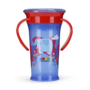 Vaso con asas y tapa, ideal para cuando comienzan a beber líquidos de manera independiente.