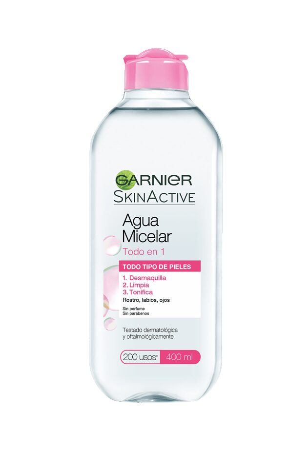 El Agua Micelar Todo en 1 limpia, desmaquilla y tonifica en un solo gesto rostro, ojos y labios. Una fórmula reconfortante y sin perfume ideal para todo tipo de piel, incluso las más sensibles. Eficacia comprobada: sus micelas actúan como imanes para captar y remover suciedad, restos de maquillaje y sebo. Limpia sin sensación grasosa. Completá tu cuidado facial con las cremas Hidratantes 3 en 1 de Garnier para todos los días, y las mascarillas hidratantes en tela Hidra Bomb de Garnier 1 vez a la semana. Combiná de acuerdo a tus necesidades con el Agua Micelar Bifásica de Garnier para remover maquillaje a prueba de agua, y el Agua Micelar Pure Active para matificar la zona T en pieles grasas.