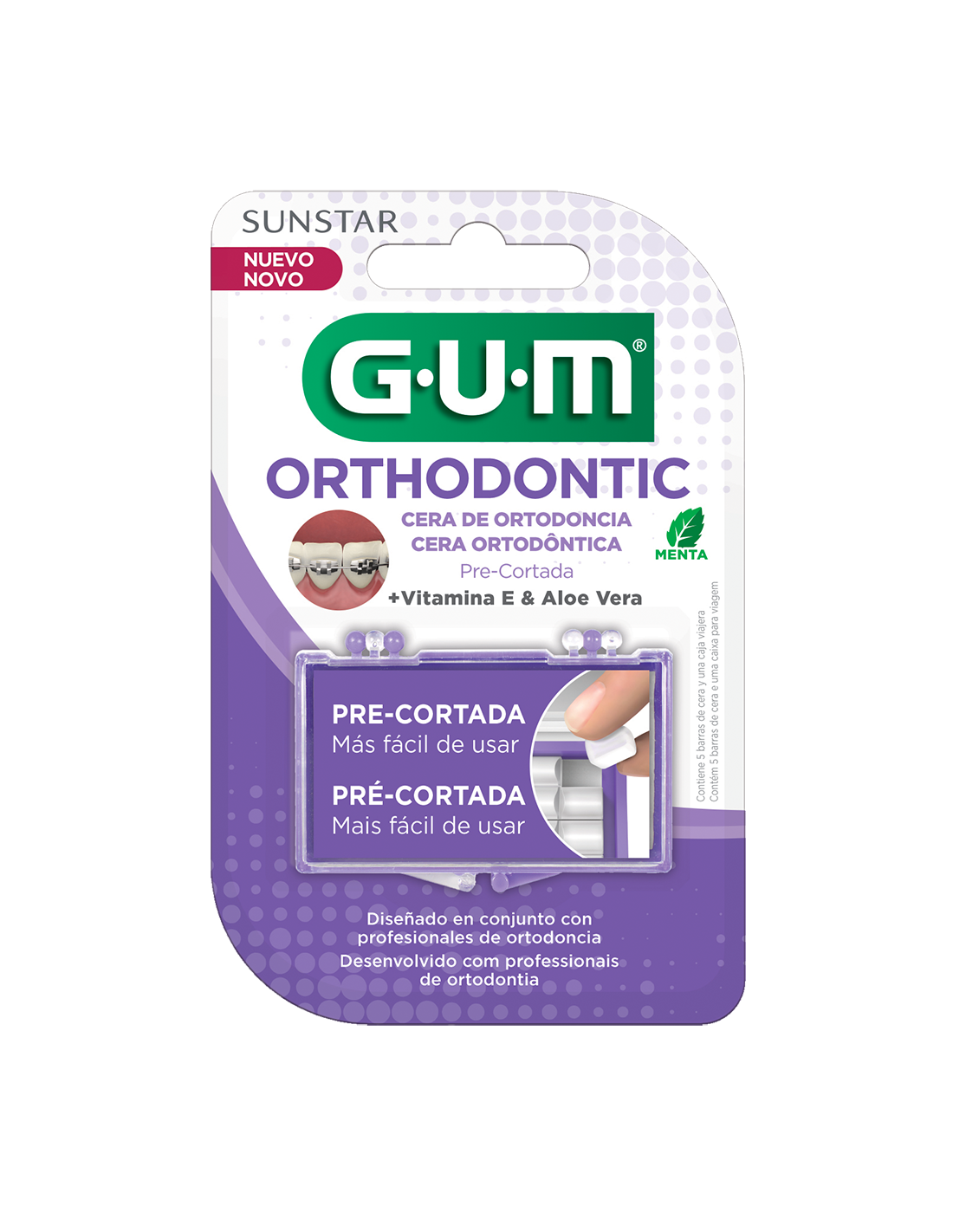 GUM Cera para ortodoncia incolora sabor menta-Estuche BAR x 5