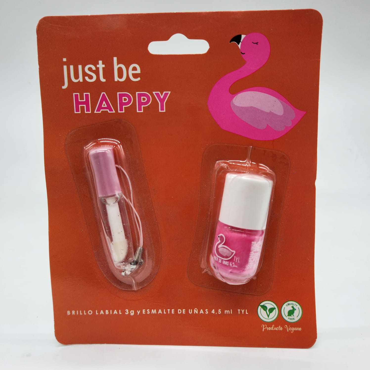 JUST BE HAPPY BRILLO LABIAL + ESMALTE DE UÑAS